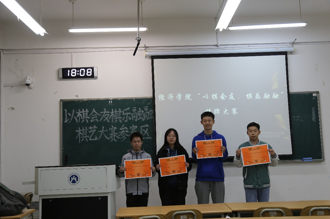 大赛包含象棋、跳棋、围棋和五子棋四个项目。赛前通过抽签方式将参赛选手两两分组,每组获胜方继续参与后续角逐,直至决出冠军为止。比赛按照象棋组、围棋组、五子棋组、跳棋组的顺序依次进行,比赛过程中,场上各选手自觉遵守比赛规则,面对劲敌毫不畏缩,沉着冷静,思维缜密,处变不惊,展现出卓越的博弈水平和高尚的竞技精神。最终,经过四个小时初赛、复赛的多轮筛选,层层角逐,管理科学与工程学院的吉智健同学获得象棋组冠军,经济学院的董逸然同学获得跳棋组冠军,财政税务学院的庞博宁同学获得围棋组冠军,统计学院李江伟同学获得五子棋组冠军。