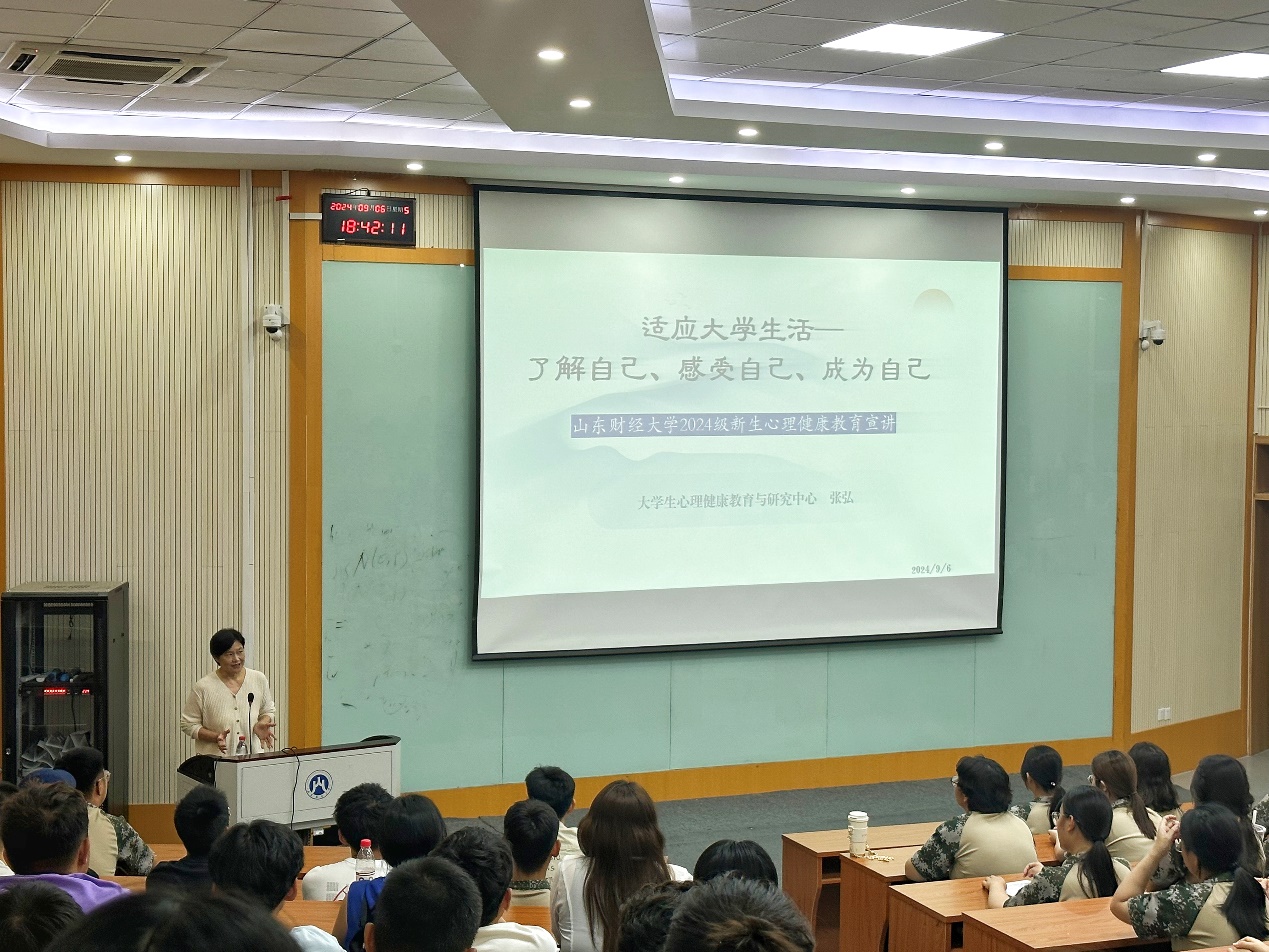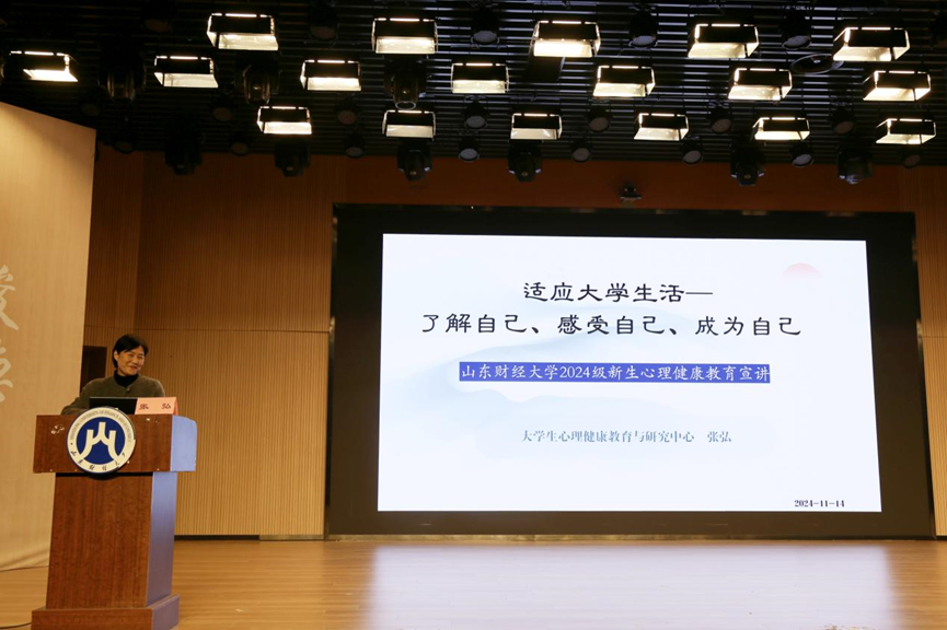 (通讯员:范嘉颖 戴悦偲)为贯彻落实《全面加强和改进新时代学生心理健康工作专项行动计划(2023-2025年)》要求,引导学生正确认识自我,提升情绪管理能力,更好地适应大学生活,经济学院于9月6日晚上、11月14日晚上分别在舜耕校区第三阶梯教室和圣井校区文化活动中心报告厅举办心理健康教育讲座,讲座特邀山东财经大学大学生心理健康与研究中心副主任、国家二级心理咨询师张弘主讲,经济学院2024级全体学生参加。