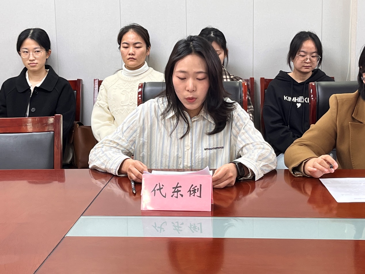 代东俐代表第十二届研究生会作述职报告,总结过去一学年研会工作的亮点和特色,并对第十三届研究生会工作提出建议,第十三届研究生会主席董亚萍代表第十三届研究生会发言。