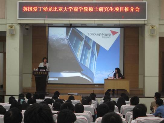 座谈会后,Mary Fischer博士为经济学院师生作了关于苏格兰文化、产业和教育的讲座。龙比亚大学所在地爱丁堡是欧洲第三大金融中心,金融业是其支柱产业,金融、财政等经济类专业是龙比亚大学的重点专业,学生就业和发展前景良好。讲座现场,经济学院的学生们就出国留学相关问题与Mary Fischer博士进行了探讨。