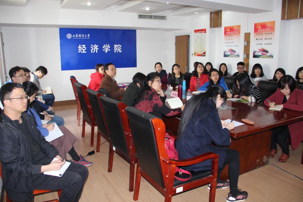 3月29日下午,中国社会科学院人口与劳动经济研究所研究员、中国社会科学院研究生院博士生导师、人口资源环境经济学研究室主任王智勇博士应邀来我院做学术交流,并作题为“财政结构、产业效率与东北问题”的学术报告。报告会由经济学院副院长王传荣教授主持,学院部分师生到场聆听。