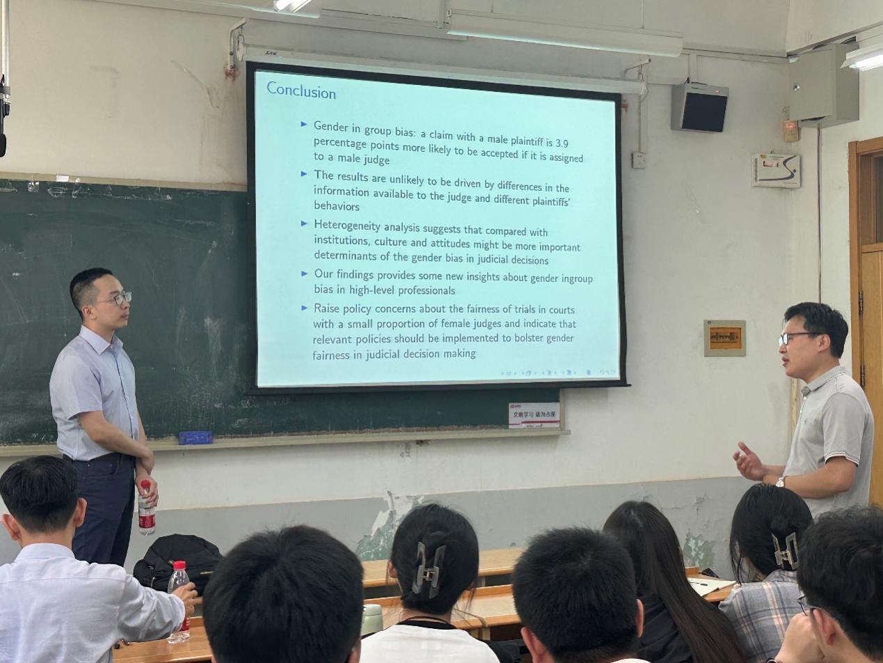 本次报告的主题是“Do Judges Exhibit Gender Bias? Evidence from the Universe of Divorce Cases in China”。研究从行为经济学的角度,基于中国司法决策记录,提取了法官独立审判的离婚案件相关数据,实证检验了性别认同对司法决策的影响,证实了司法决策中群内性别认知差异性的存在,并进一步表明在发展中国家,与制度相比,文化和态度可能是司法决策中性别认知差异性的更重要决定因素�