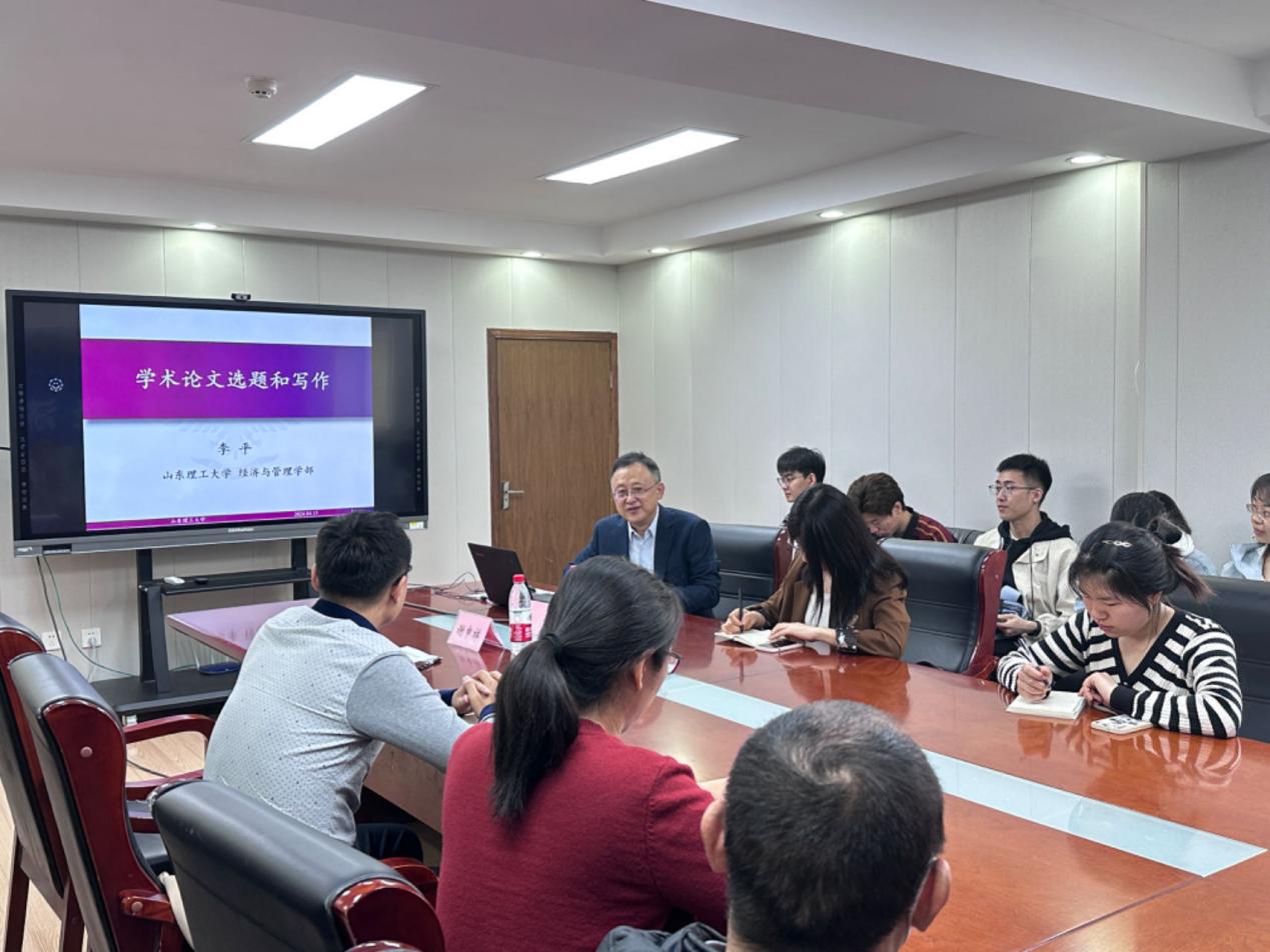 2024�4�15日上午,由我院主办的明德经济讲堂在舜耕校区办公楼1208会议室顺利举行。本期明德经济讲堂邀请到山东理工大学李平教授担任主讲,报告由山东财经大学副校长、经济学院院长谢申祥主持,经济学院部分师生参与讲座�