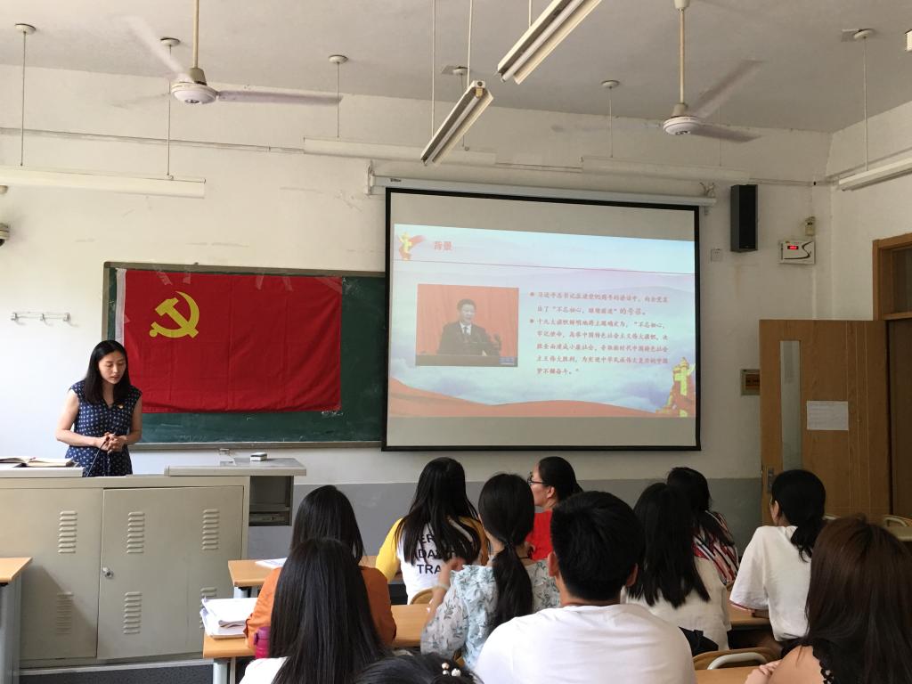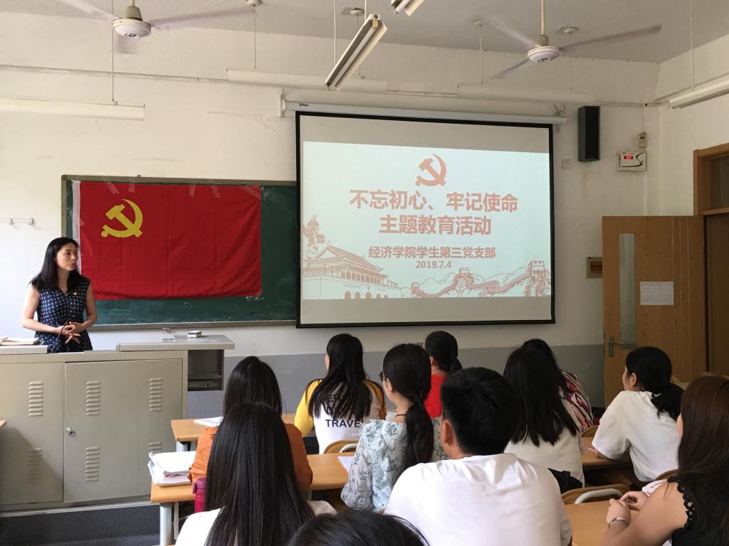 (通讯员:付雯)7月4日,经济学院副院长彭留英在舜耕校区1号教学楼为学生第三党支部上“不忘初心,牢记使命”主题教育党课。