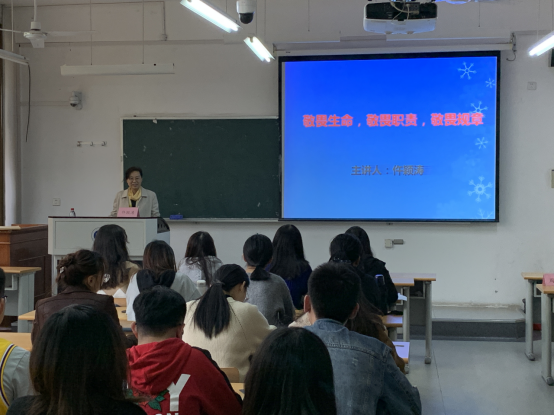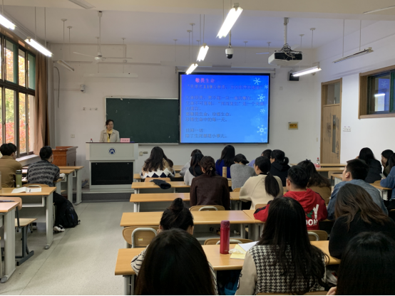 11月1日下午,经济学院党委副书记仵颖涛在舜耕校区3302教室对经济学院2019级全体研究生开展“敬畏生命,敬畏职责,敬畏规章”主题教育,全体同学通过观看电影《中国机长》深化主题教育。