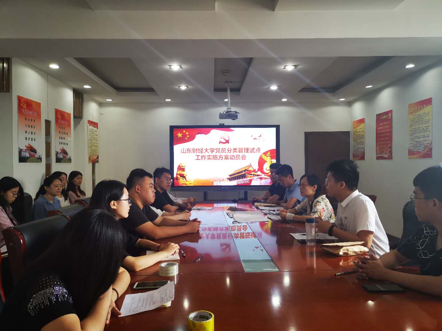 各个党支部召开山东财经大学党员分类管理试点工作实施方案动员大会,认真学习工作方案要求,要求每位党员对照标准找差距,对照文件找不足,分析了当前党支部的工作态势,并对下一步分类管理工作进行详细部署。