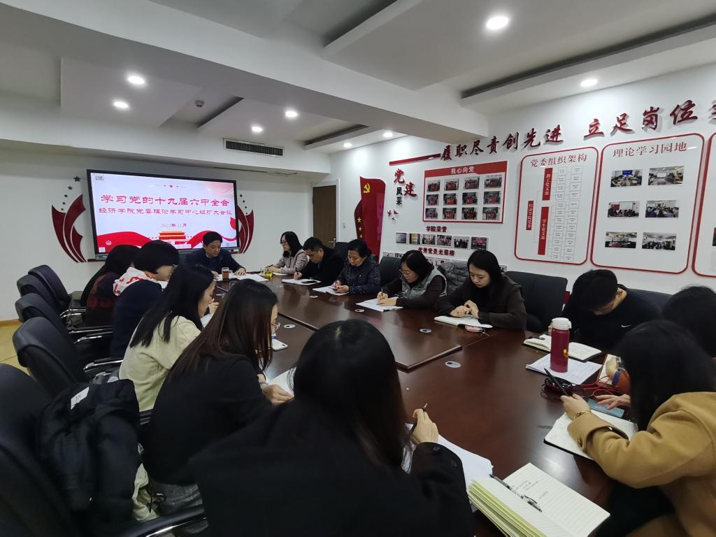 (李冰封 王琦 曹静静)2021年11月24日下午,经济学院召开党委理论学习中心组扩大会议,专题学习十九届六中全会会议精神,会议由党委书记姜伟主持,党委领导班子成员和全体党支部书记参加学习研讨。
