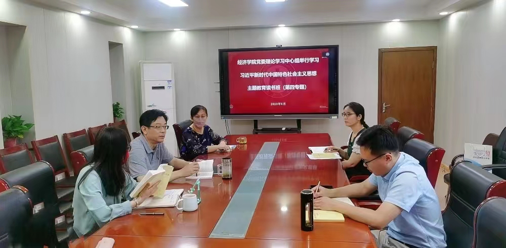 6月8日—9日,经济学院党委理论学习中心组主题教育读书班以“正确理解和大力推进中国式现代化”为专题进行第四次集体学习,重点系统学习了《习近平新时代中国特色社会主义思想学习纲要》一书和5月29日习近平总书记在中共中央政治局第五次集体学习时关于教育强国建设的重要论述。校主题教育工作办公室刘思峰、李亚列会指导。读书班由党委书记姜伟主持,全体班子成员参加学习。