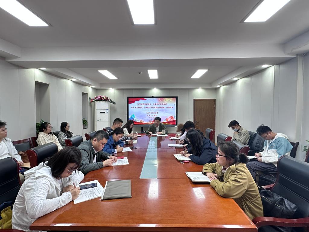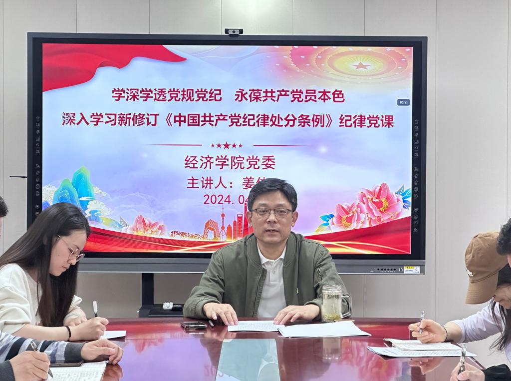 按照校党委开展党纪学习教育安排,4月29日下午,党委书记姜伟以“学深学透党规党纪,永葆共产党员本色”为题讲授党纪学习教育专题党课,学院各党支部书记和部分党员参加学习。