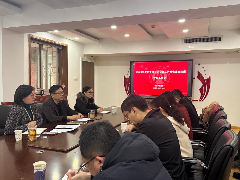 1月10日下午,经济学院党委在舜耕校区办公楼1408会议室召开2024年度党支部书记全面从严治党述责述廉评议工作会。学院领导班子成员及全体党支部书记参加此次会议。会议由陈静主持。