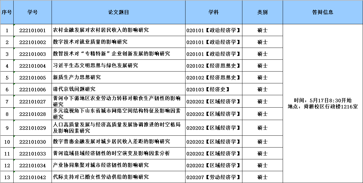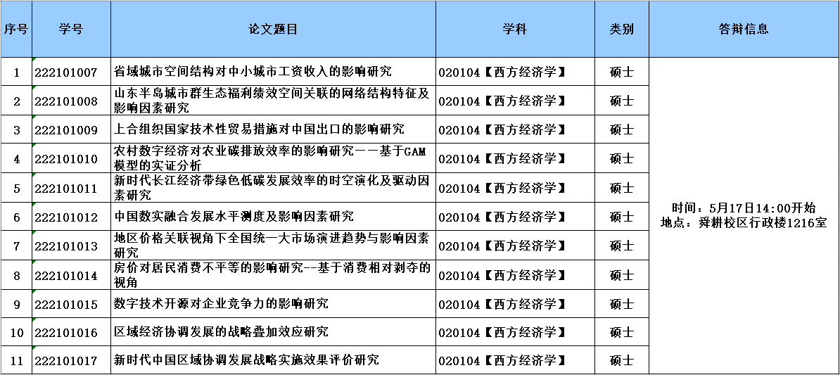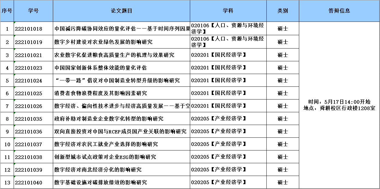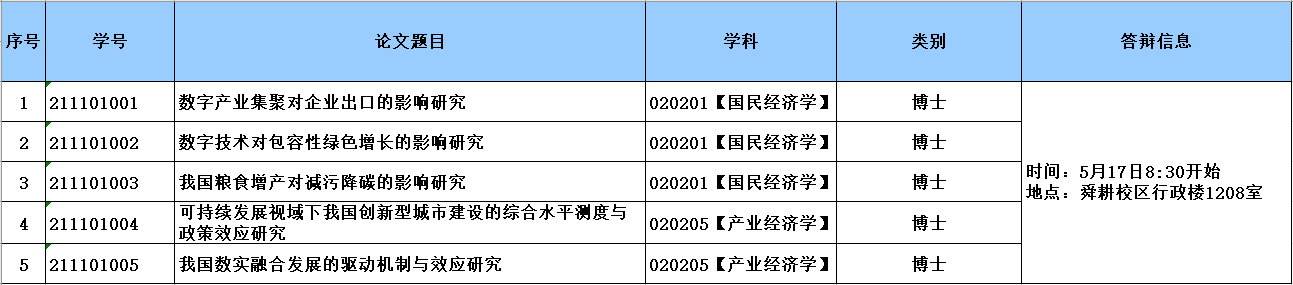 经济学院2025届研究生学位论文答辩公告