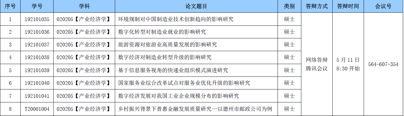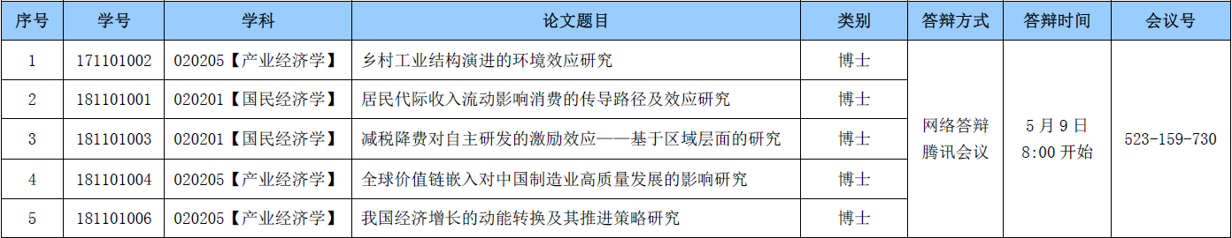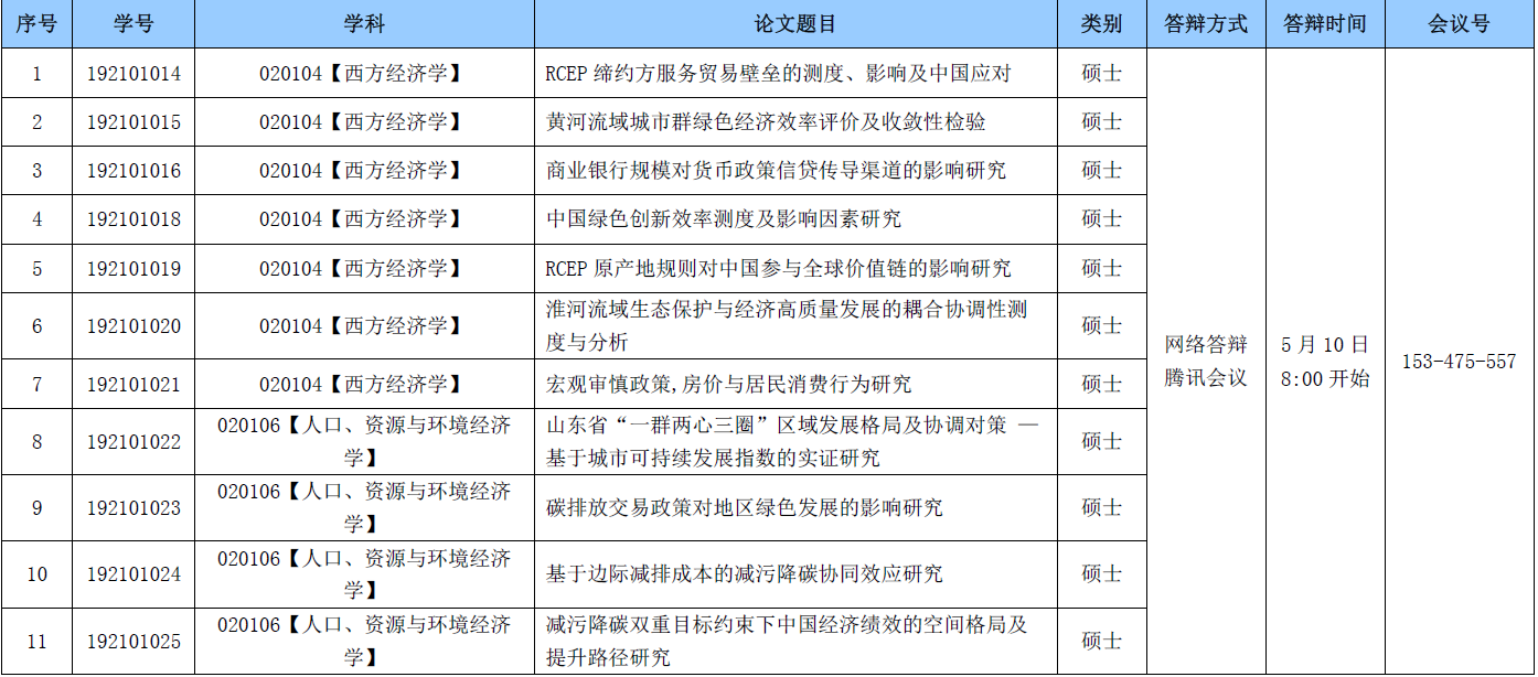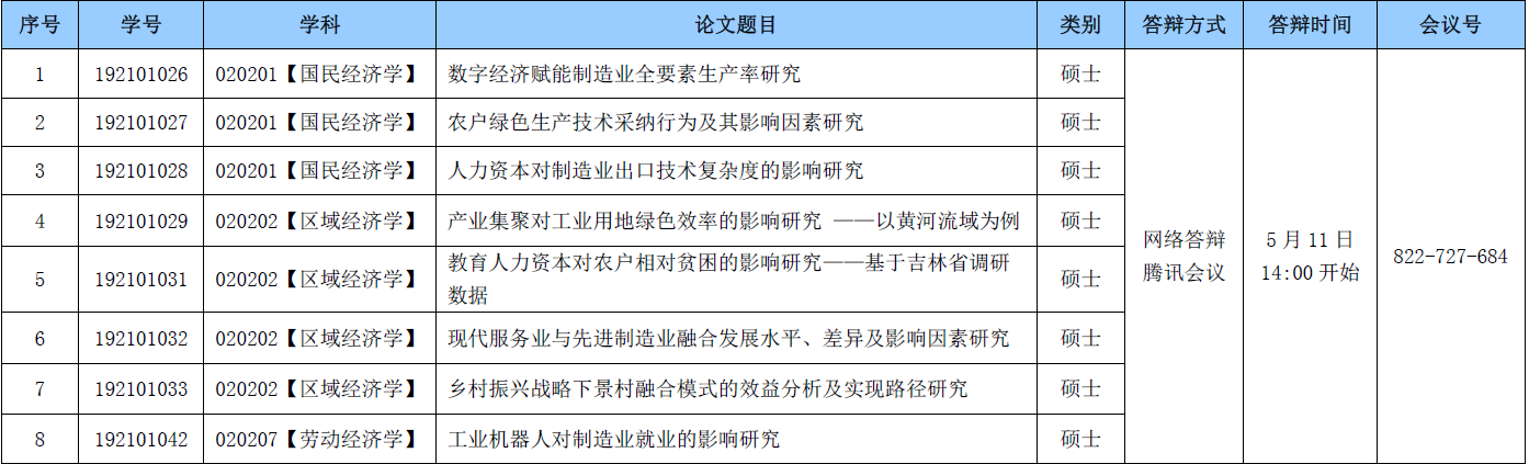 经济学院2022届研究生学位论文答辩公告