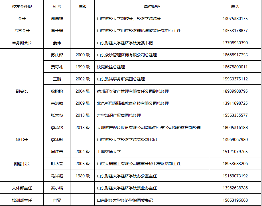 山东财经大学经济学院校友会组成架�
