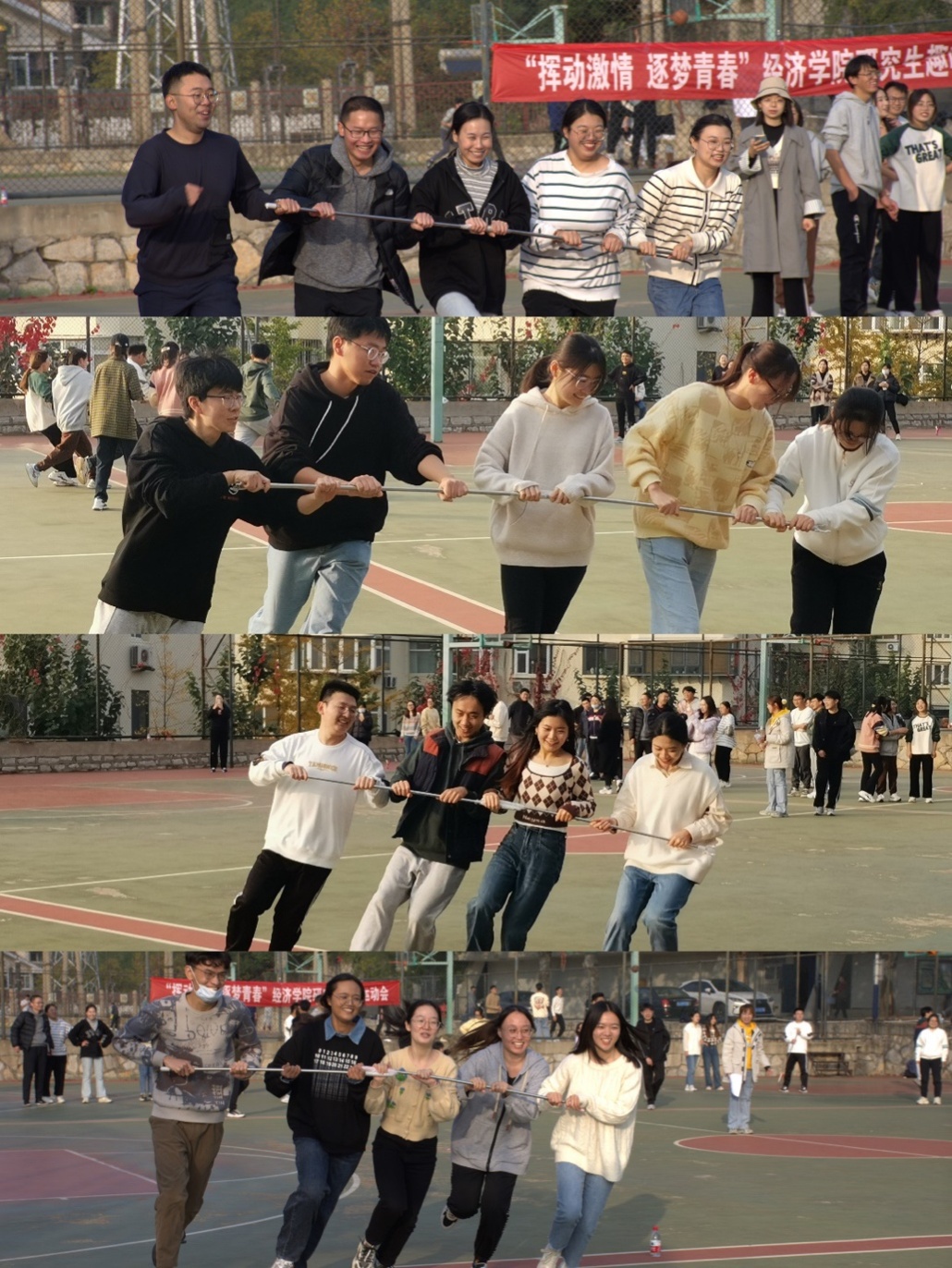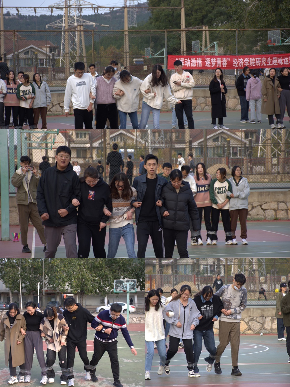 (通讯人:代东俐)2022�11�4日下午院研究生会在舜耕校区篮球场举办趣味运动会。山东财经大学副校长、经济学院院长谢申祥,院党委副书记李冰封、陈静,副院长崔宝敏、张明志来到运动会现场为同学们加油助威,2022级全体研究生以及2020级�2021级部分研究生参加运动会�