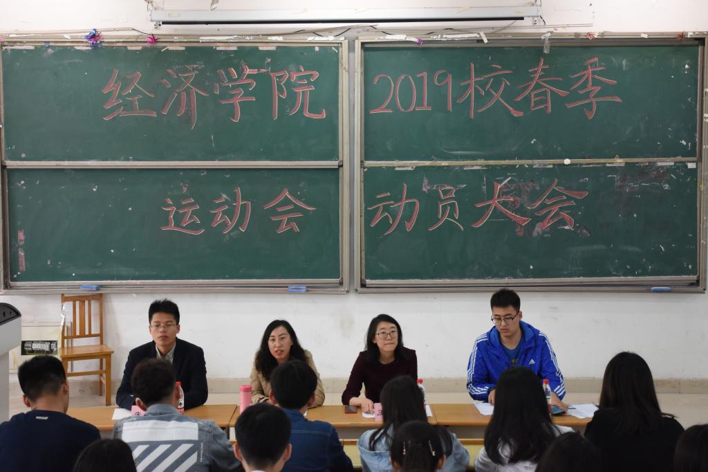 (通讯员:夏昱颀 杨晓雯)4�24日中午,经济学院于圣井校区敏行楼召开2019年校春季运动会动员大会。经济学院院团委书记付雯、正科级辅导员王琦、辅导员朱海林出席会议,经济学院全体运动员、啦啦操队员、方阵队员、工作人员参加会议�