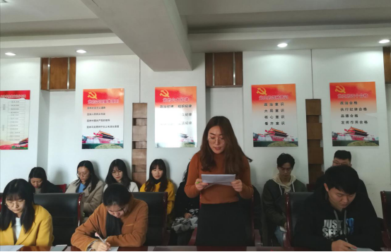 2019�11�6日上午,经济学院新一届研究生会换届工作在舜耕校区行政楼1208室顺利召开。经济学院党委副书记仵颖涛、学工办主任周新秀、第七届研究生会代表马寒卿及第八届研究生会全体成员参加本次大会,会议由周新秀主持�
